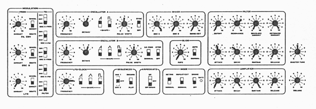 The diagrams are not meant as absolutes but as examples. The patches should serve as starting points for you to create your own sounds. There is no single, ideal trumpet or bass patch, for example, because the synthesized sound must usually be heard in a musical context of rhythm, melody and harmony. The notes played, their speed, your technique, the voicings of ensemble instruments or soloists, even the acoustical characteristics of the room all influence the perception of many of the knob-set parameters such as pulse-width, envelope settings (ATTACK, DECAY, SUSTAIN, RELEASE), and filter cutoff. The art of patching is the ability to make music with the Pro-One. It takes practice.